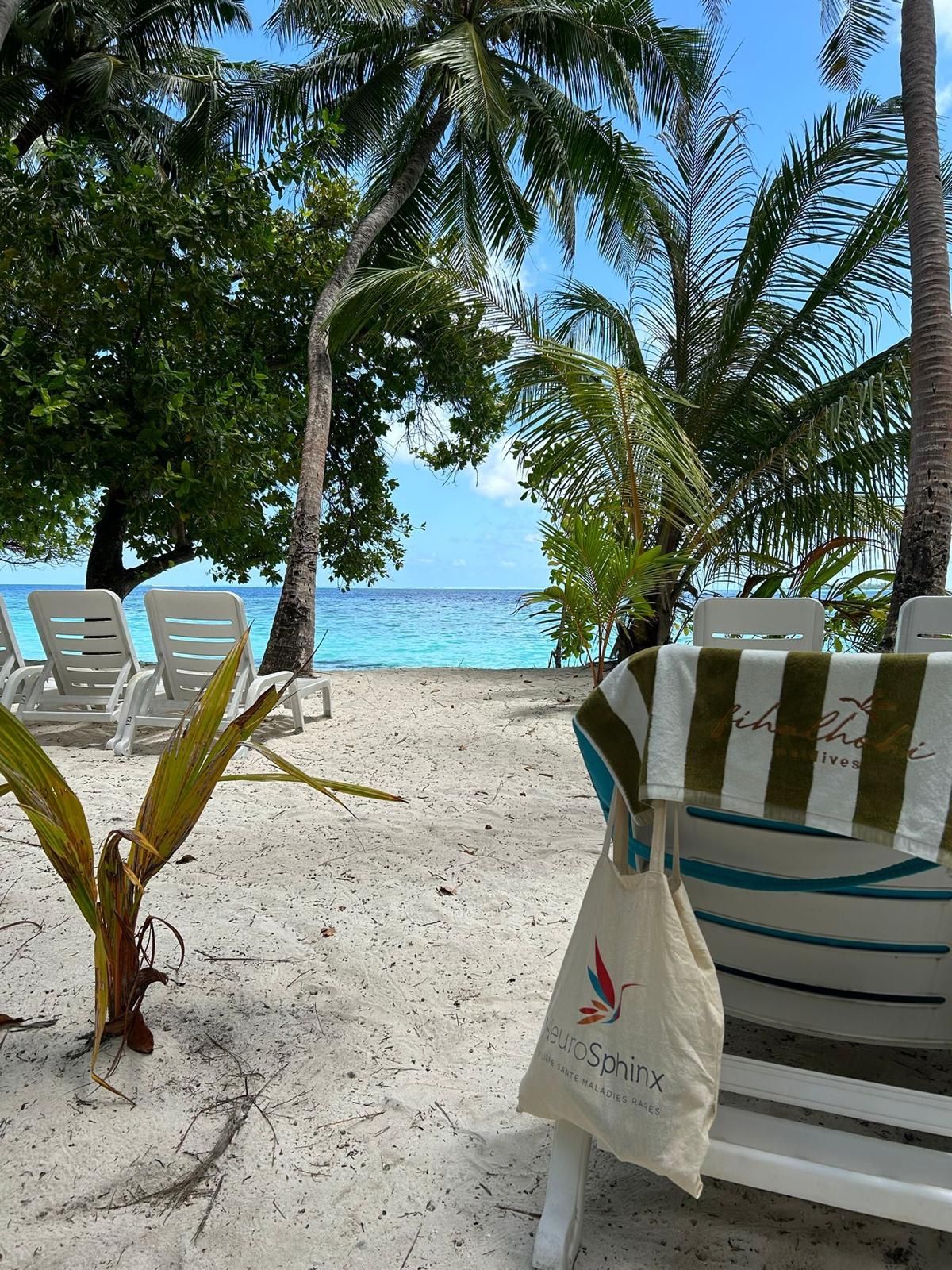 ☀️🌴 Même au bout du monde, les transats se teintent des couleurs de la Filière Santé Maladies Rares NeuroSphinx!